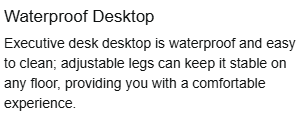 • 【Professional Grade Stability】Designed to meet the demands of a busy workday, this business desk offers a rock-solid foundation. From daily administrative tasks to intensive creative sessions, its robust build quality makes it the ultimate heavy duty desk for professionals.